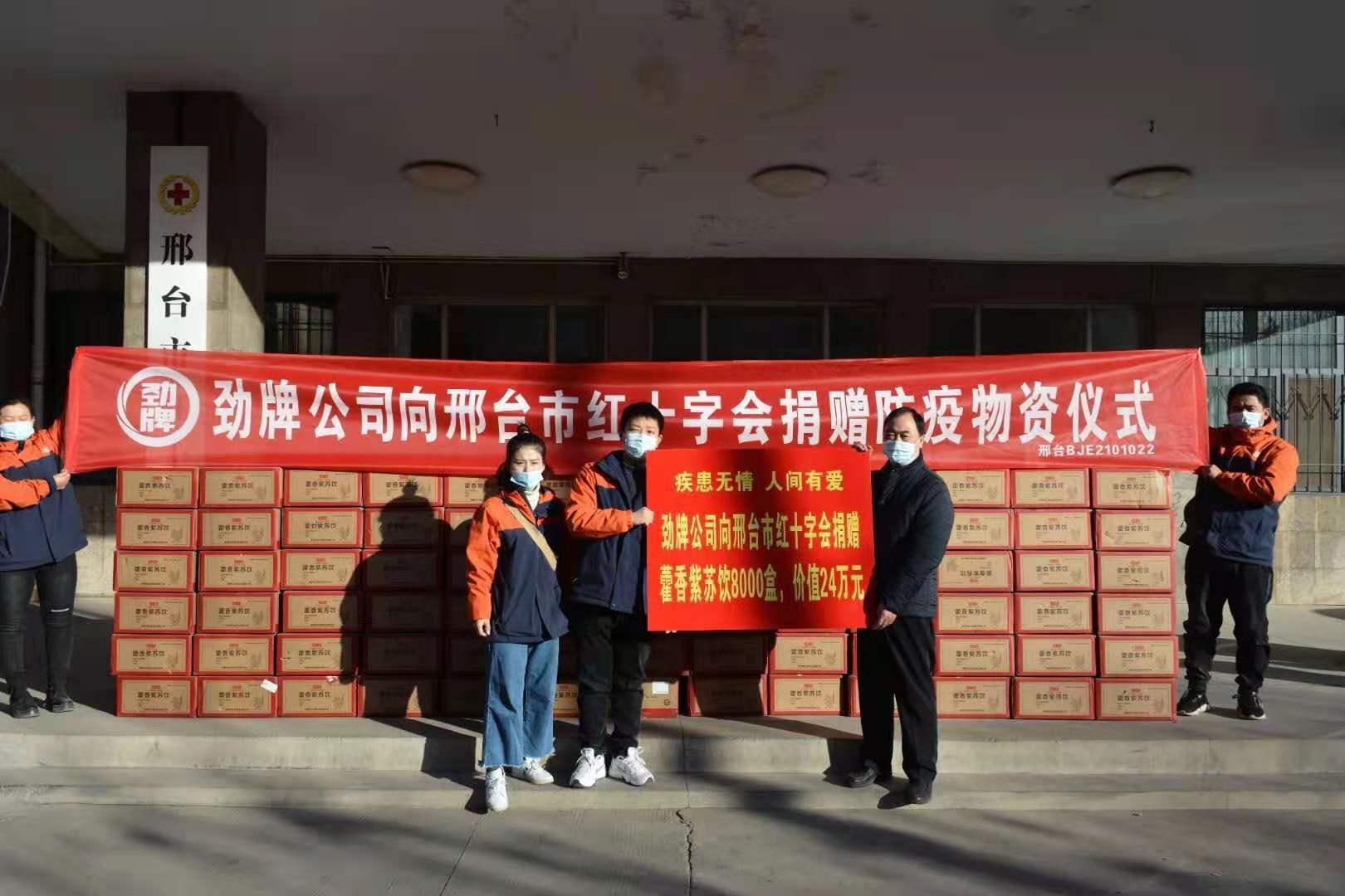 昨日,河北省邢臺市收到了勁牌持正堂委托邢臺紅十字會捐贈的8000盒,總價值達(dá)24萬元的藿香紫蘇飲。